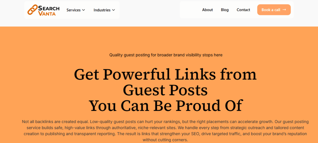 SearchVanta fits businesses and SEO agencies that want managed guest posting with low risk and sustainable growth.